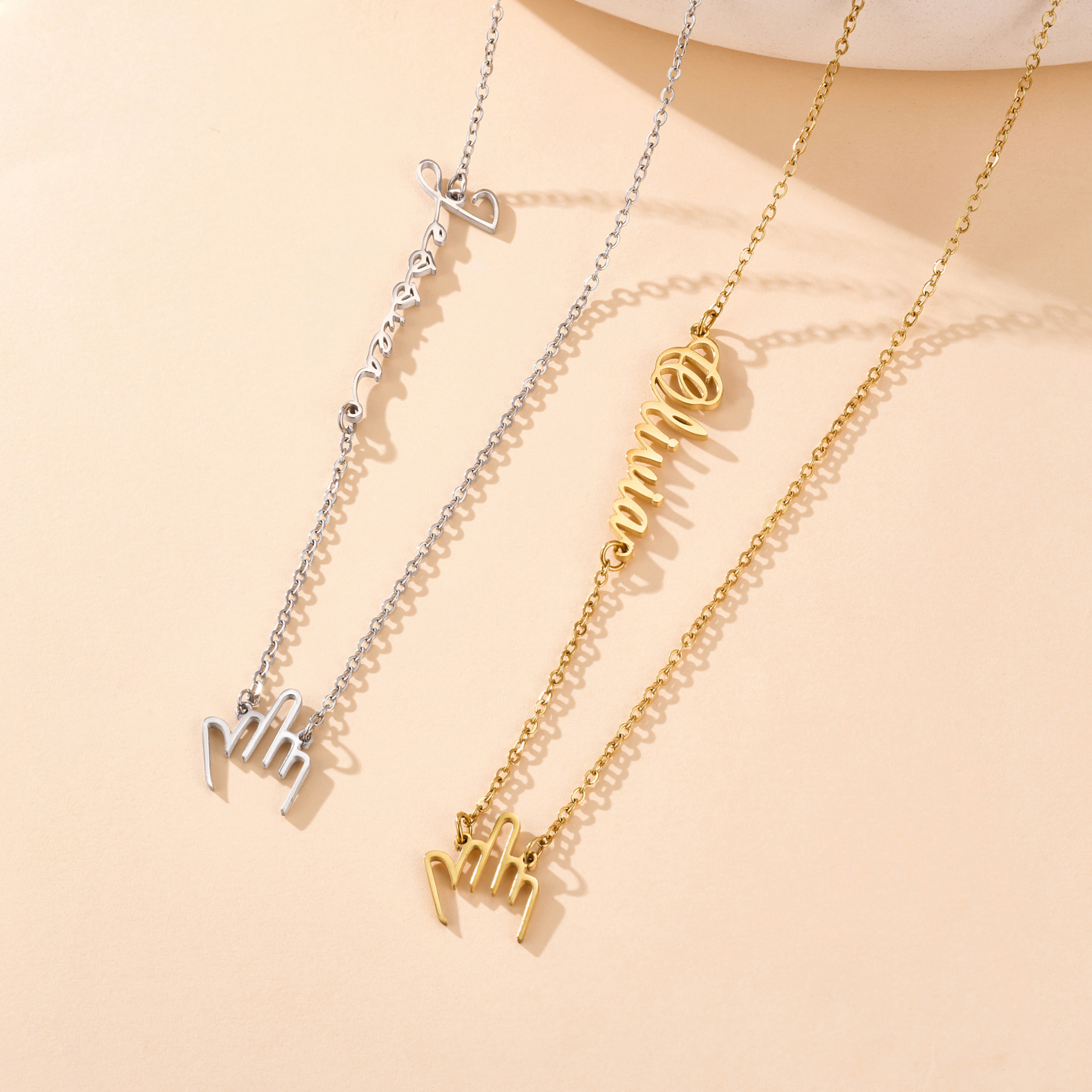 Style Personalized Sideways Name Tiny Middle Finger Necklace